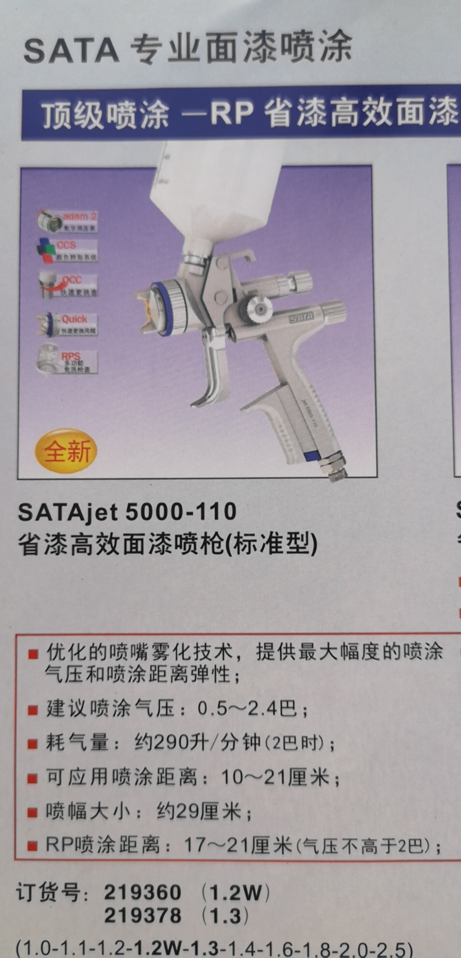 SATA高性能喷枪完美适用于汽车修补中的面漆喷涂,各种喷嘴口径为主流油漆公司的色漆和清漆