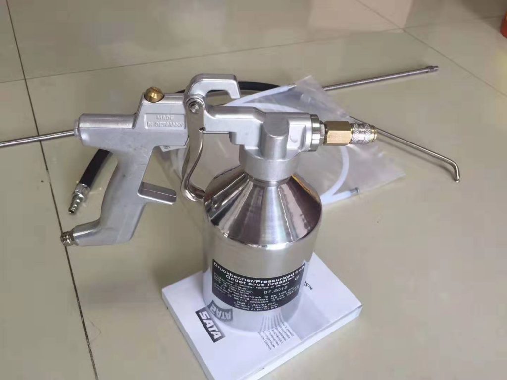 配带1升压力罐的喷枪,专用于喷涂车体内部夹 层及车底防锈 物料,带3条快速更换喷杆(尼龙管、 弯管和刚性管道),适合各种不同的喷涂需要.
