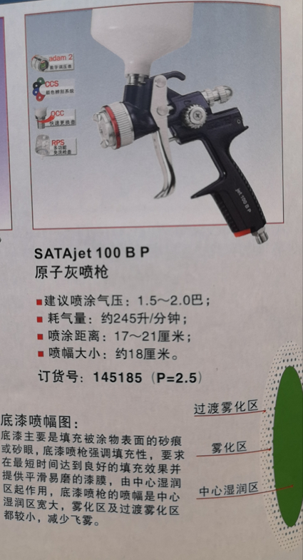 * 喷涂距离:约19厘米; * 耗气量:约250升/分钟;